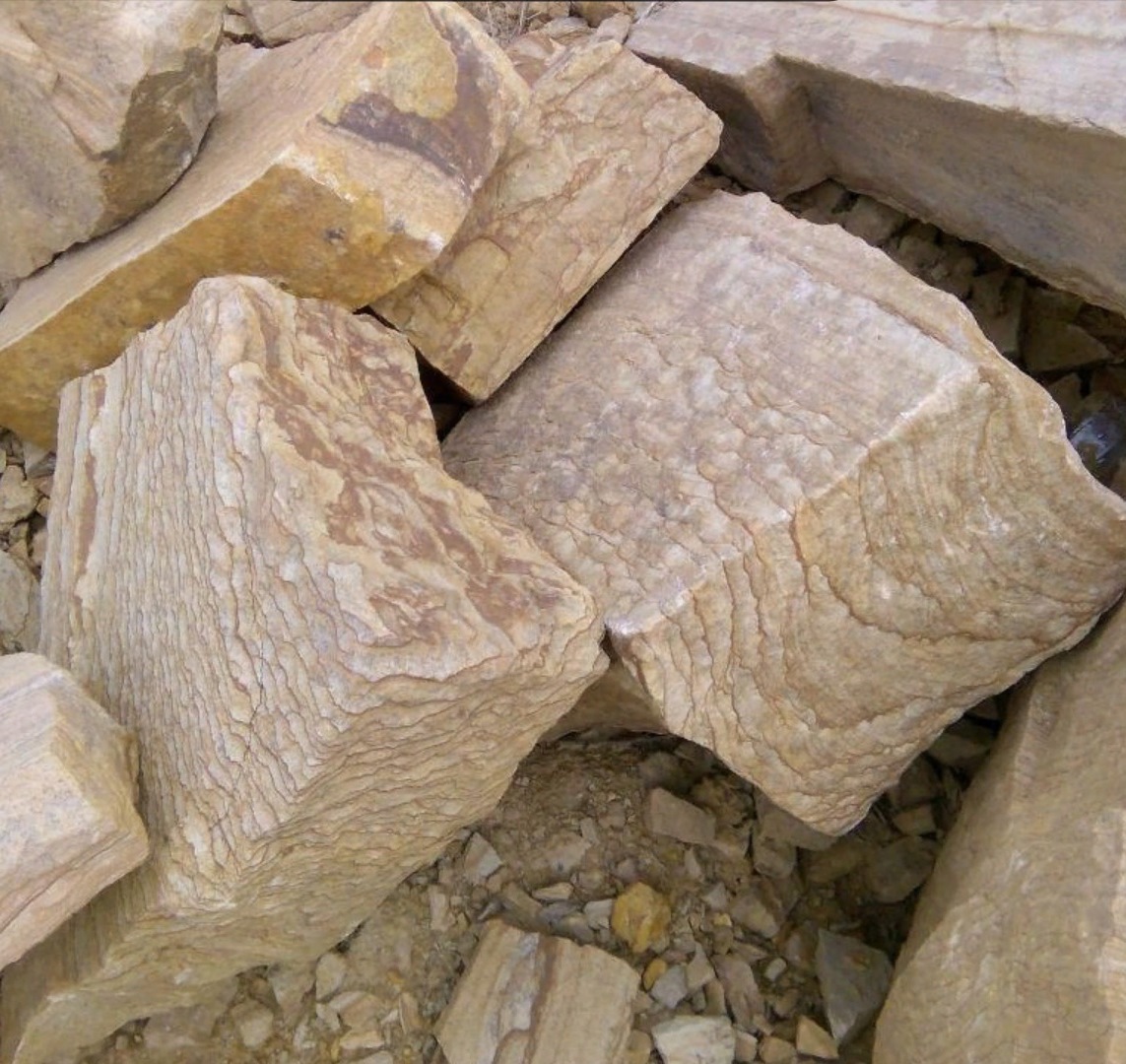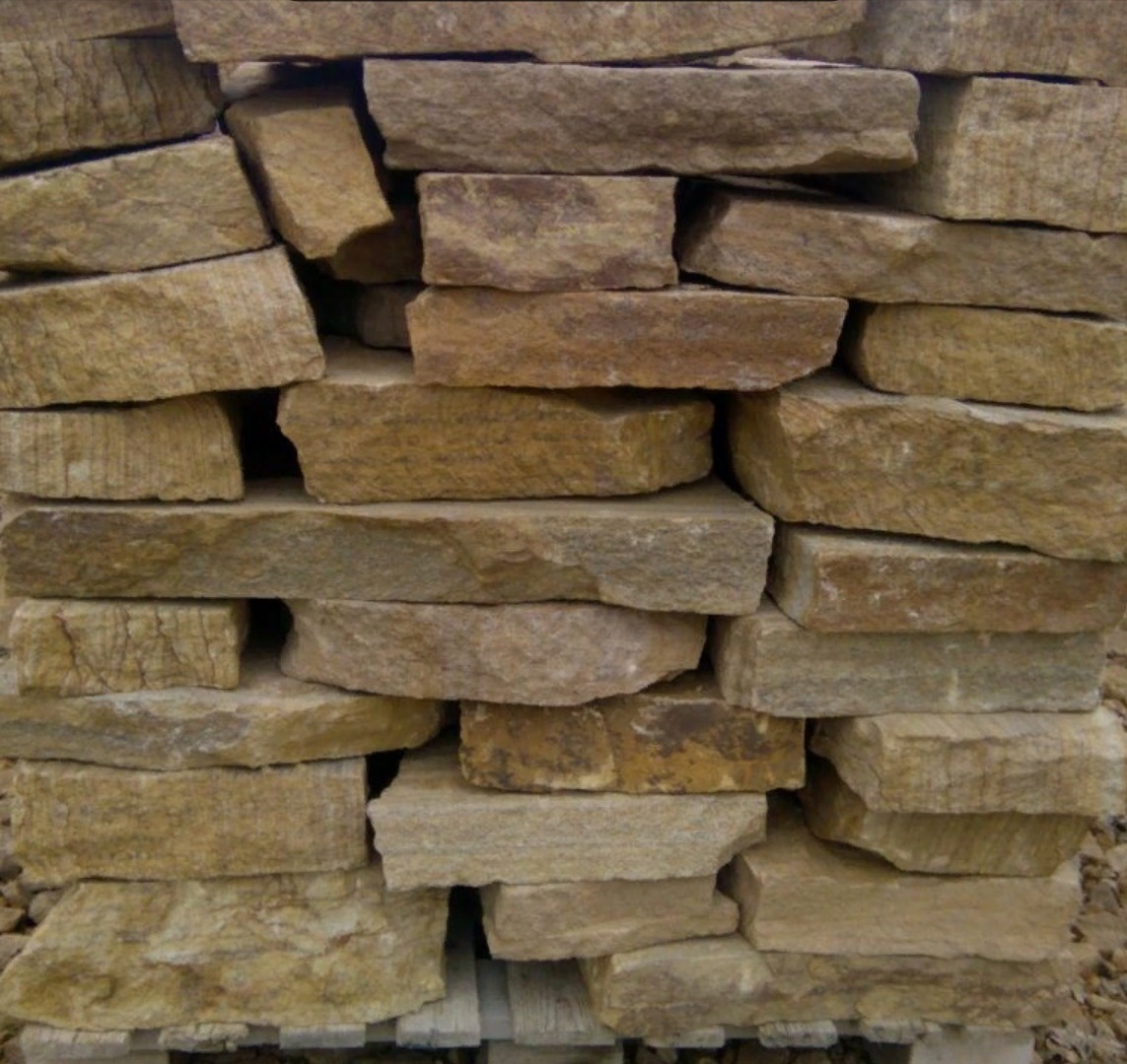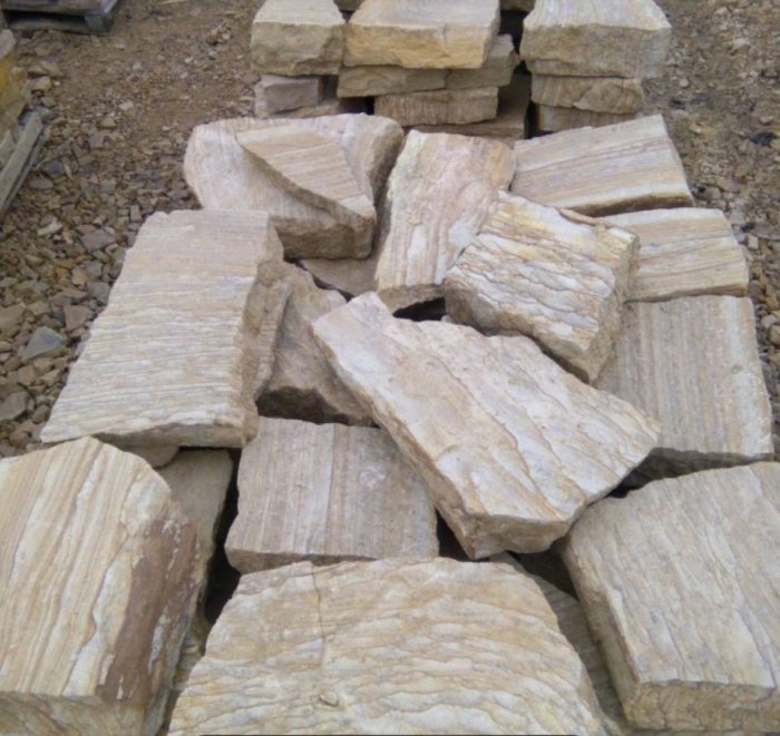 • Kamenclub.ru: Песчаник пластушка желтый с рисунком (7-15 см)  купить в Махачкале плитняк - пластушка - бут желтый песчаник 10200 руб/м3   фото КАМЕНЬ КЛУБ