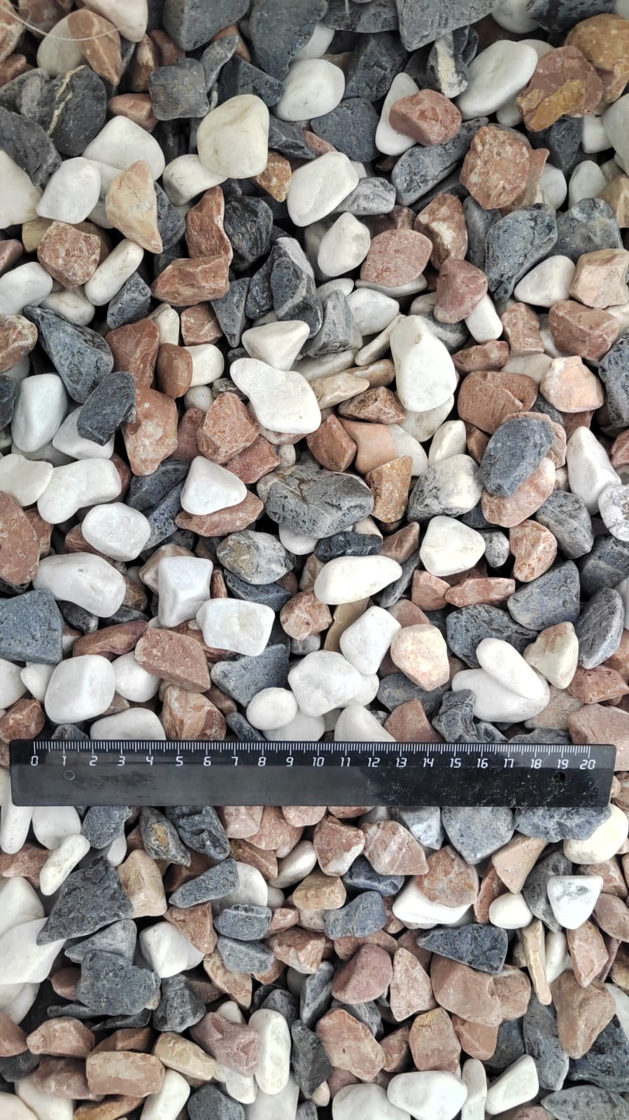 Мраморная крошка (щебень галтованный микс:белый-зеленый-розовый) фр.20-40 мм.